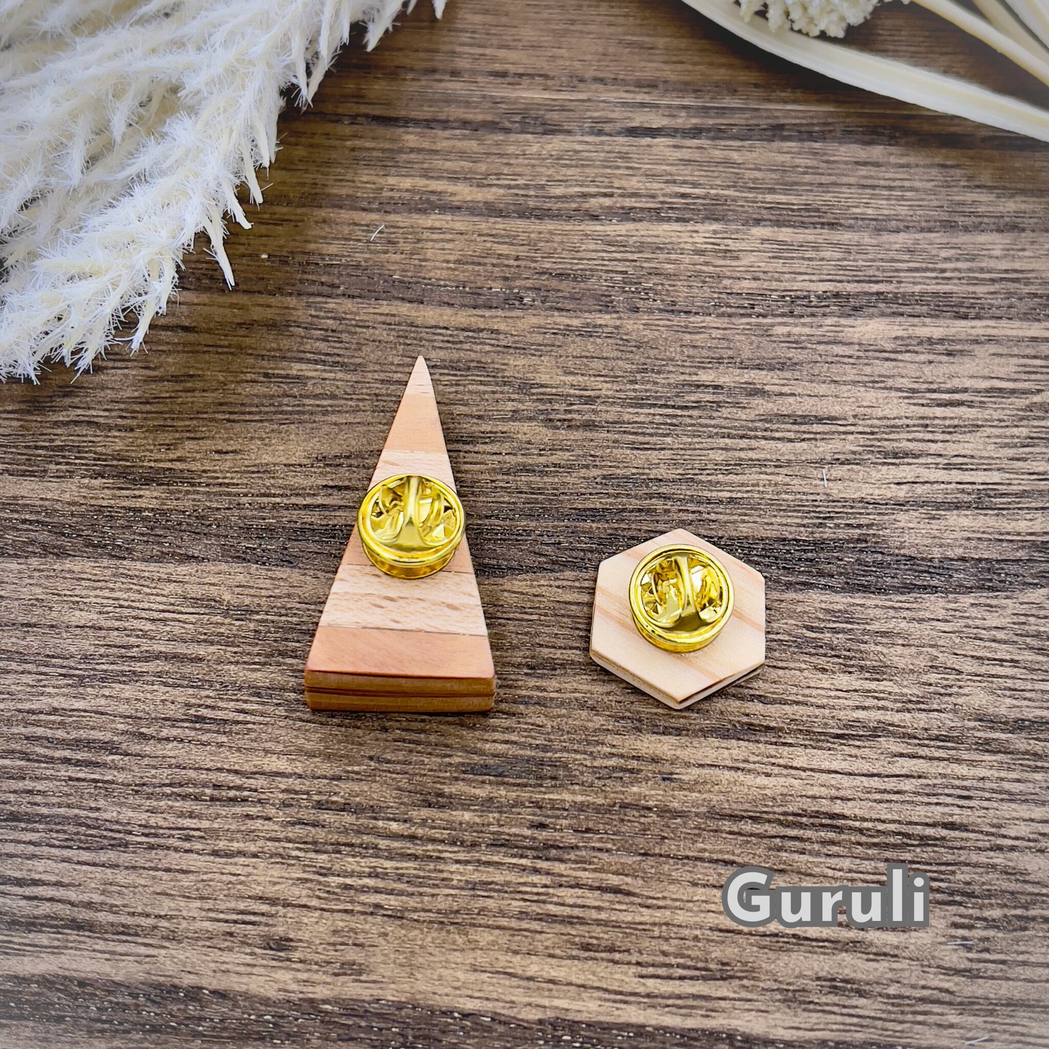 ブナと杉の木材を使った可愛らしいツリー型ピンバッチです